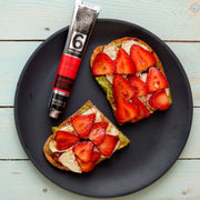 This jam produced using strawberries of the Santo André variety, produced on our farm, with a very intense aroma, flavored with Port wine, from the Douro Valley region (Portugal) which is aged in wood, of great aromatic complexity, evidencing the aromas of nuts, such as walnuts or almonds, and acquiring aromas of wood, coffee, chocolate and peppery honey, with a touch of chilli pepper, makes this jam slightly spicy, surprising for the richness and intensity of flavors.